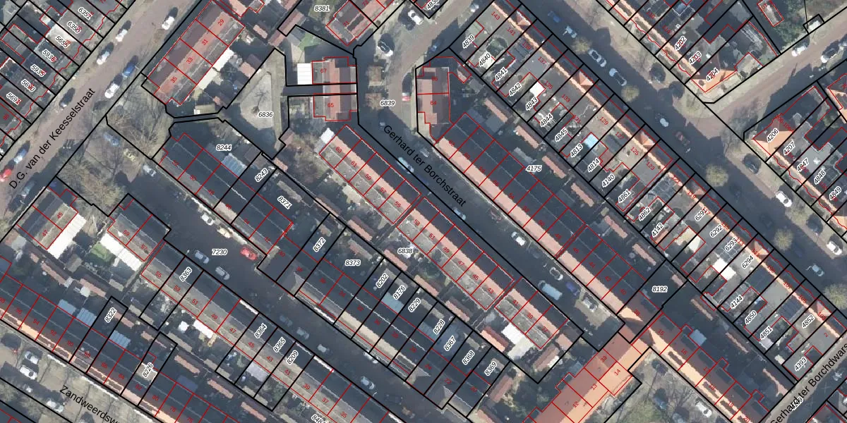 Het perceel waarop Gerhard ter Borchstraat 53 staat heeft een oppervlakte van 1594 m². Dit is een zeer groot perceel. De perceeloppervlakte wordt geregistreerd door het Kadaster. Gedetailleerde informatie over de maten van dit perceel kunt u vinden in het rapport Kadastrale kaart met maatvoering van Gerhard ter Borchstraat 53.