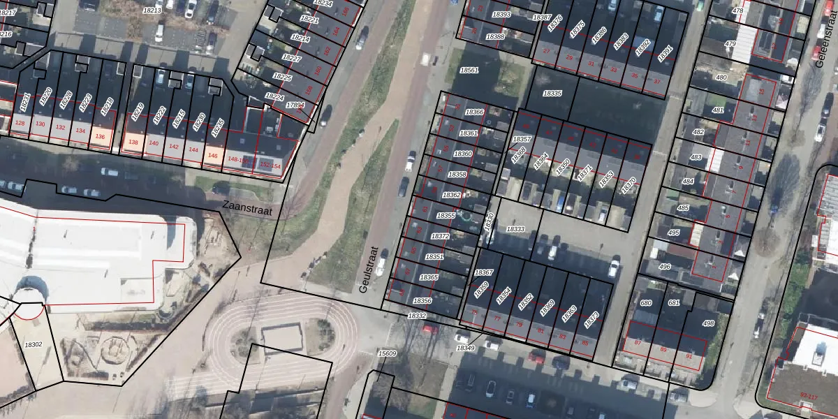 Het perceel waarop Geulstraat 61 staat heeft een oppervlakte van 92 m². Dit is een klein perceel. De perceeloppervlakte wordt geregistreerd door het Kadaster. Gedetailleerde informatie over de maten van dit perceel kunt u vinden in het rapport Kadastrale kaart met maatvoering van Geulstraat 61.
