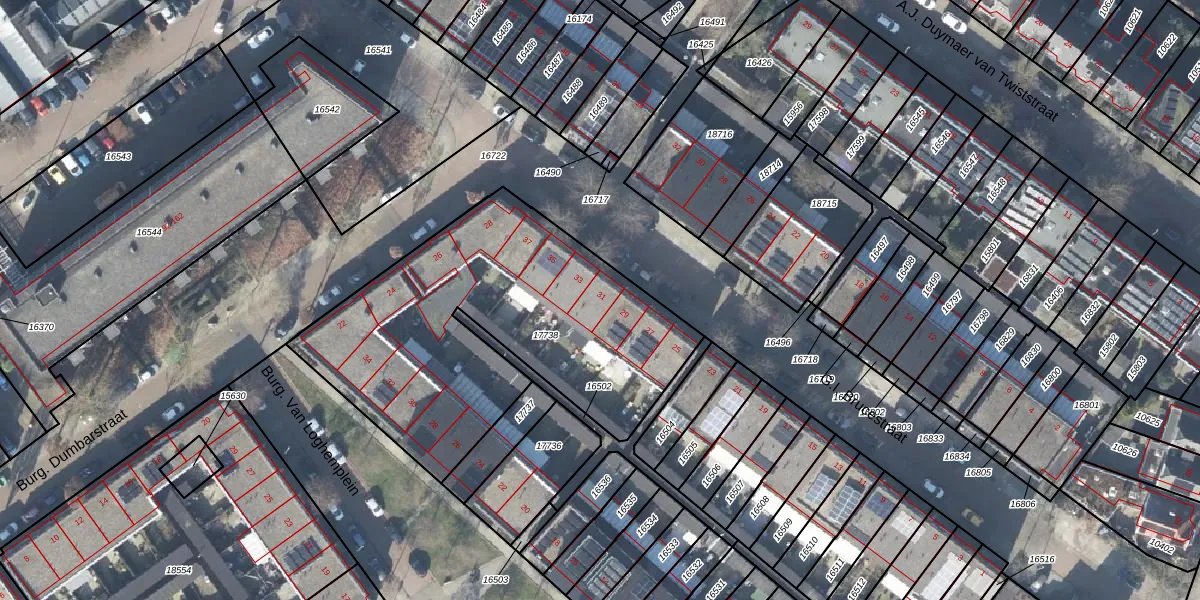 Het perceel waarop het adres ligt is DVT00-B-17738. De afkorting 'DVT00' staat voor kadastrale gemeente Deventer. Het perceel is met 1690 m² relatief groot. Het gemiddelde ligt in de kadastrale gemeente Deventer op 1301,3 m². De grootste perceeloppervlakte in de kadastrale gemeente is 59,4 ha. De kleinste oppervlakte bedraagt 0 m². Op het perceel zijn 16 adressen aanwezig. De huidige grenzen van het perceel zijn digitaal in de Basisregistratie Kadaster (BRK) geregistreerd op 29-10-2013.