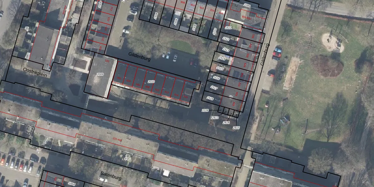 Het perceel waarop Gildenburg 616 staat heeft een oppervlakte van 641 m². Dit is een groot perceel. De perceeloppervlakte wordt geregistreerd door het Kadaster. Gedetailleerde informatie over de maten van dit perceel kunt u vinden in het rapport Kadastrale kaart met maatvoering van Gildenburg 616.