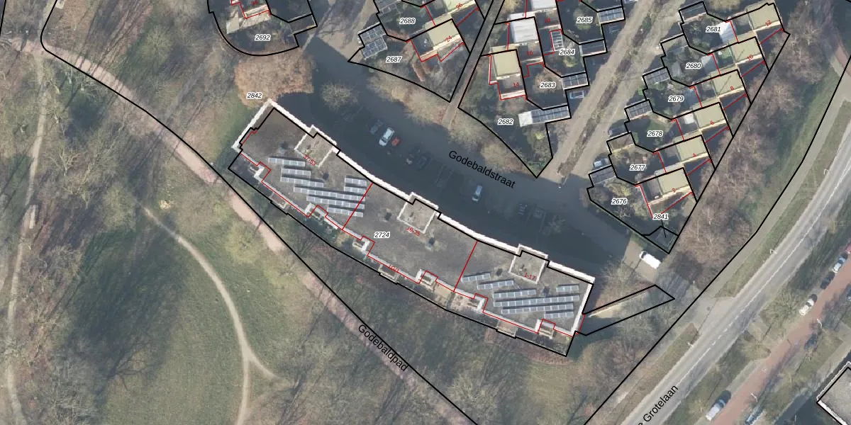 Het perceel waarop Godebaldstraat 21 staat heeft een oppervlakte van 1745 m². Dit is een zeer groot perceel. De perceeloppervlakte wordt geregistreerd door het Kadaster. Gedetailleerde informatie over de maten van dit perceel kunt u vinden in het rapport Kadastrale kaart met maatvoering van Godebaldstraat 21.