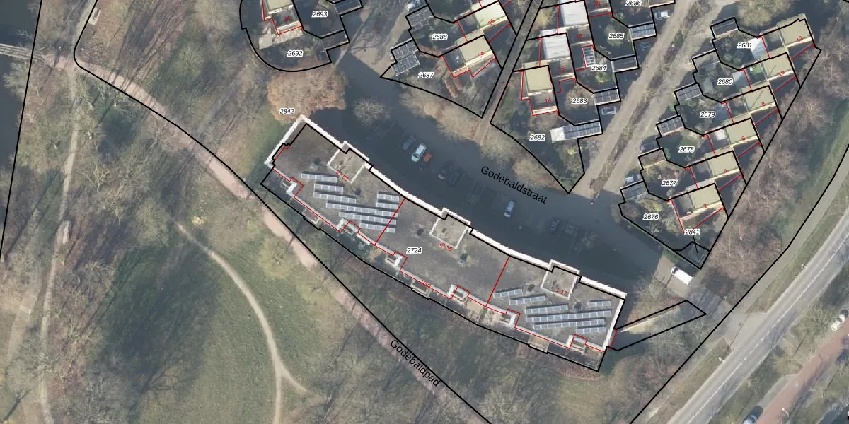 Het perceel waarop Godebaldstraat 23 staat heeft een oppervlakte van 1745 m². Dit is een zeer groot perceel. De perceeloppervlakte wordt geregistreerd door het Kadaster. Gedetailleerde informatie over de maten van dit perceel kunt u vinden in het rapport Kadastrale kaart met maatvoering van Godebaldstraat 23.