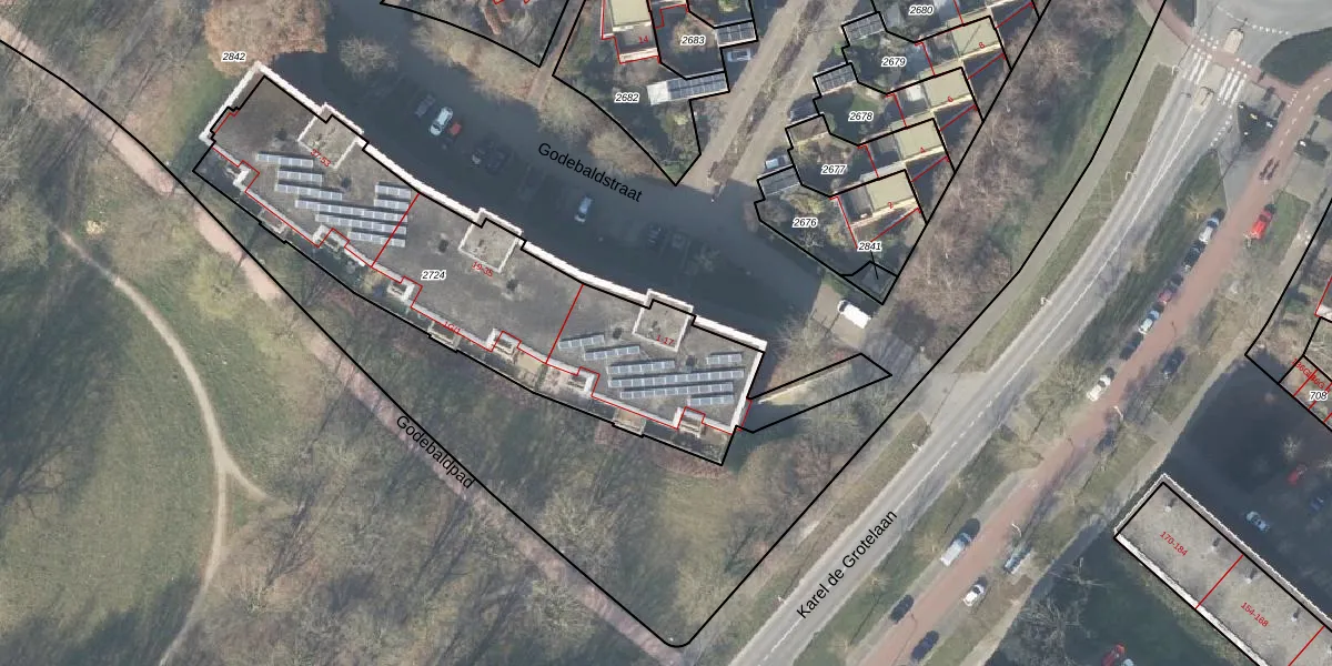 Het perceel waarop Godebaldstraat 3 staat heeft een oppervlakte van 1745 m². Dit is een zeer groot perceel. De perceeloppervlakte wordt geregistreerd door het Kadaster. Gedetailleerde informatie over de maten van dit perceel kunt u vinden in het rapport Kadastrale kaart met maatvoering van Godebaldstraat 3.