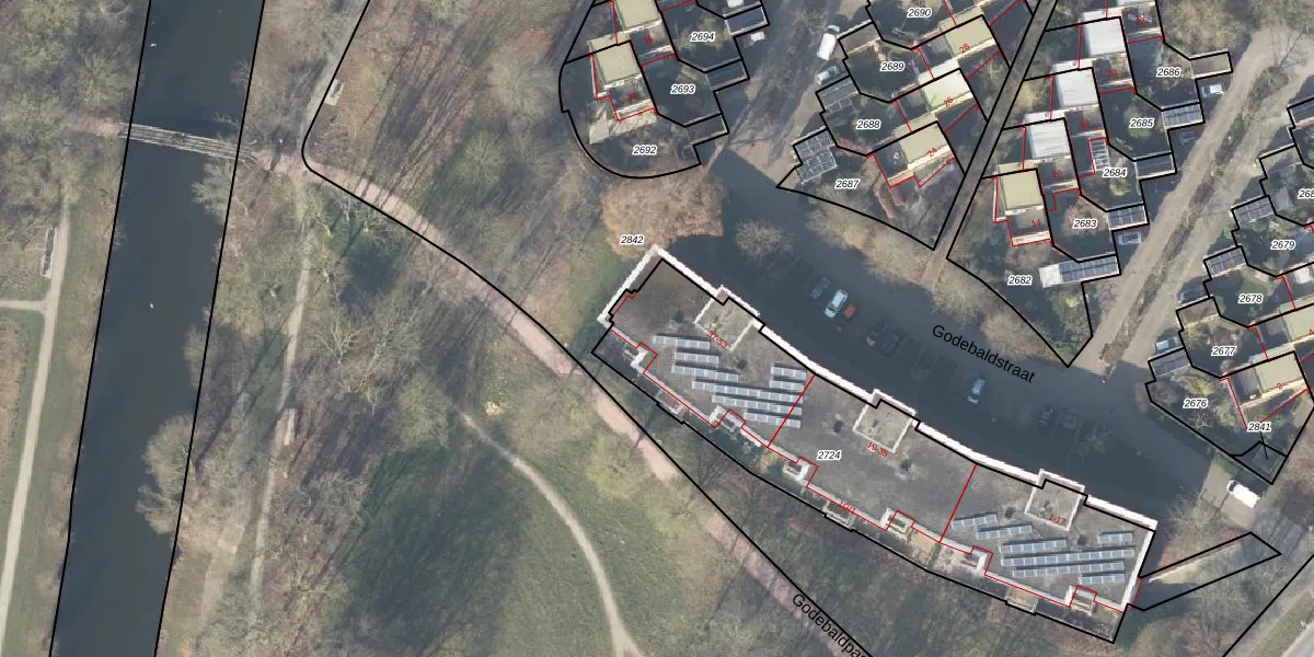 Het perceel waarop Godebaldstraat 53 staat heeft een oppervlakte van 1745 m². Dit is een zeer groot perceel. De perceeloppervlakte wordt geregistreerd door het Kadaster. Gedetailleerde informatie over de maten van dit perceel kunt u vinden in het rapport Kadastrale kaart met maatvoering van Godebaldstraat 53.