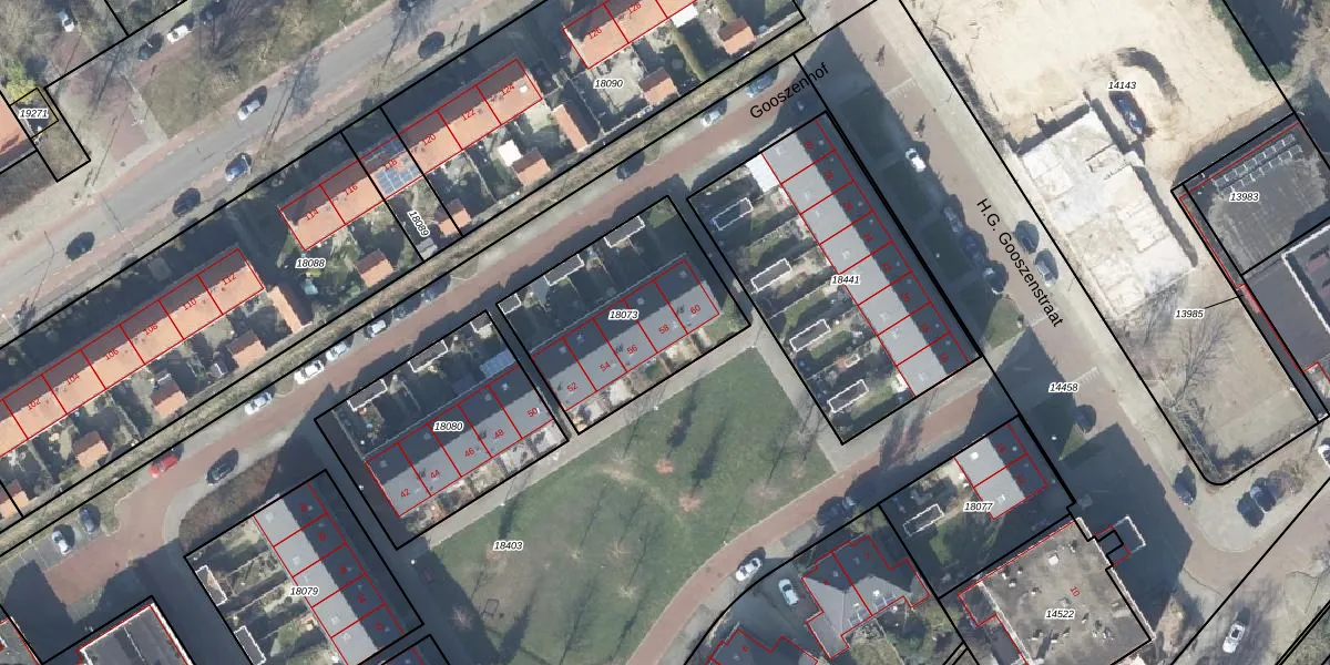 Het perceel waarop Gooszenhof 58 staat heeft een oppervlakte van 707 m². Dit is een groot perceel. De perceeloppervlakte wordt geregistreerd door het Kadaster. Gedetailleerde informatie over de maten van dit perceel kunt u vinden in het rapport Kadastrale kaart met maatvoering van Gooszenhof 58.
