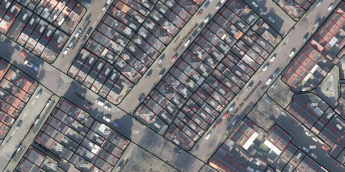 Het perceel waarop Govert Flinckstraat 21 staat heeft een oppervlakte van 111 m². Dit is een middelgroot perceel. De perceeloppervlakte wordt geregistreerd door het Kadaster. Gedetailleerde informatie over de maten van dit perceel kunt u vinden in het rapport Kadastrale kaart met maatvoering van Govert Flinckstraat 21.