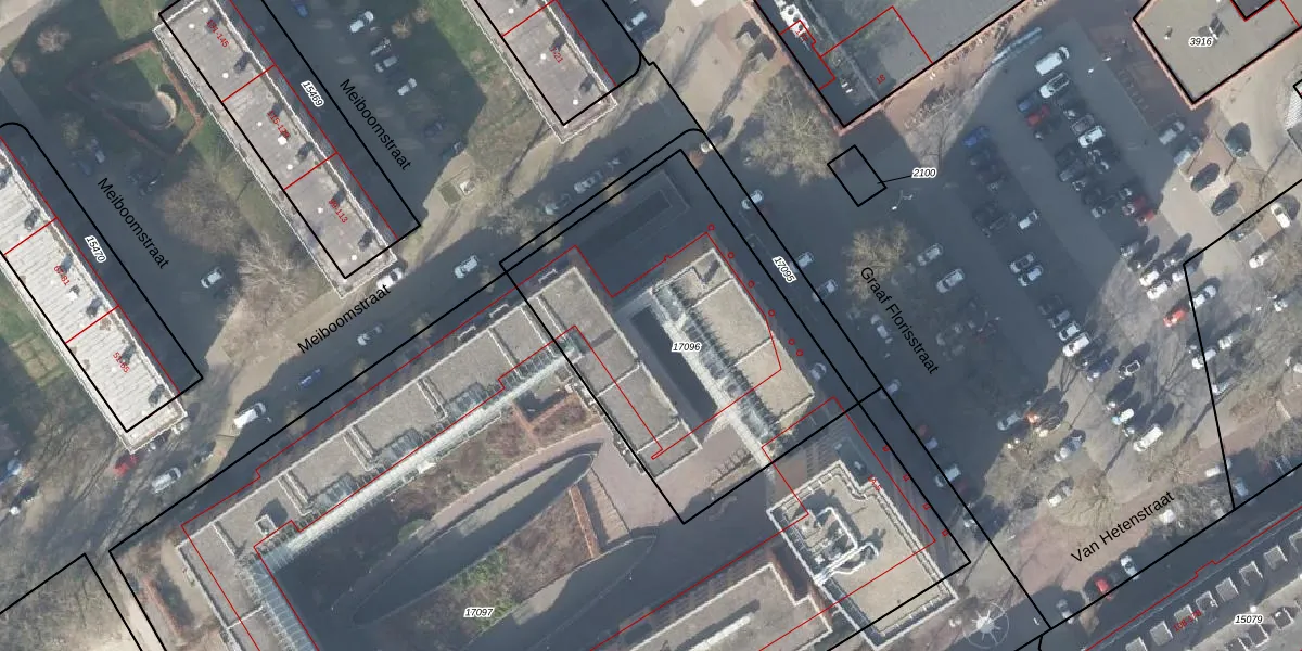 Het perceel waarop Graaf Florisstraat 1-F-32 staat heeft een oppervlakte van 1562 m². Dit is een zeer groot perceel. De perceeloppervlakte wordt geregistreerd door het Kadaster. Gedetailleerde informatie over de maten van dit perceel kunt u vinden in het rapport Kadastrale kaart met maatvoering van Graaf Florisstraat 1-F-32.