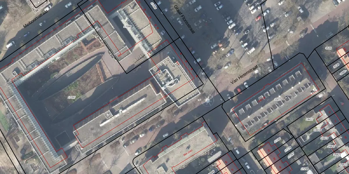 Het perceel waarop Graaf Florisstraat 1-F-40 staat heeft een oppervlakte van 6678 m². Dit is een zeer groot perceel. De perceeloppervlakte wordt geregistreerd door het Kadaster. Gedetailleerde informatie over de maten van dit perceel kunt u vinden in het rapport Kadastrale kaart met maatvoering van Graaf Florisstraat 1-F-40.