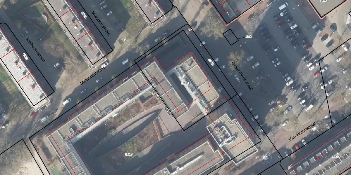 Het perceel waarop Graaf Florisstraat 1-F-43 staat heeft een oppervlakte van 1562 m². Dit is een zeer groot perceel. De perceeloppervlakte wordt geregistreerd door het Kadaster. Gedetailleerde informatie over de maten van dit perceel kunt u vinden in het rapport Kadastrale kaart met maatvoering van Graaf Florisstraat 1-F-43.