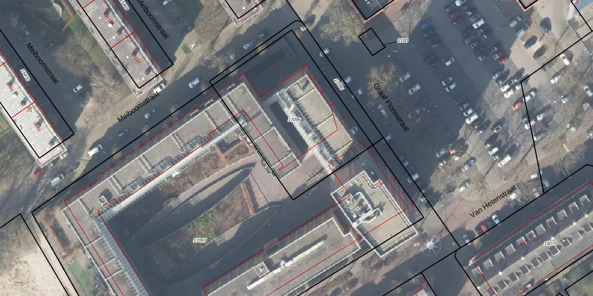 Het perceel waarop Graaf Florisstraat 1-F-45 staat heeft een oppervlakte van 1562 m². Dit is een zeer groot perceel. De perceeloppervlakte wordt geregistreerd door het Kadaster. Gedetailleerde informatie over de maten van dit perceel kunt u vinden in het rapport Kadastrale kaart met maatvoering van Graaf Florisstraat 1-F-45.
