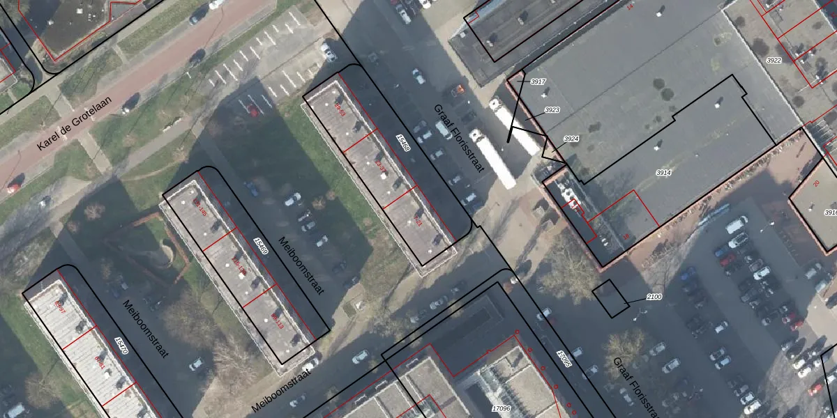 Het perceel waarop Graaf Florisstraat 19 staat heeft een oppervlakte van 802 m². Dit is een groot perceel. De perceeloppervlakte wordt geregistreerd door het Kadaster. Gedetailleerde informatie over de maten van dit perceel kunt u vinden in het rapport Kadastrale kaart met maatvoering van Graaf Florisstraat 19.
