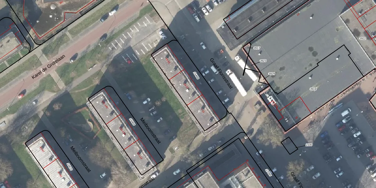 Het perceel waarop Graaf Florisstraat 27 staat heeft een oppervlakte van 802 m². Dit is een groot perceel. De perceeloppervlakte wordt geregistreerd door het Kadaster. Gedetailleerde informatie over de maten van dit perceel kunt u vinden in het rapport Kadastrale kaart met maatvoering van Graaf Florisstraat 27.