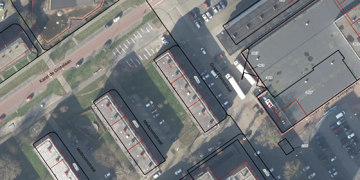 Het perceel waarop Graaf Florisstraat 31 staat heeft een oppervlakte van 802 m². Dit is een groot perceel. De perceeloppervlakte wordt geregistreerd door het Kadaster. Gedetailleerde informatie over de maten van dit perceel kunt u vinden in het rapport Kadastrale kaart met maatvoering van Graaf Florisstraat 31.
