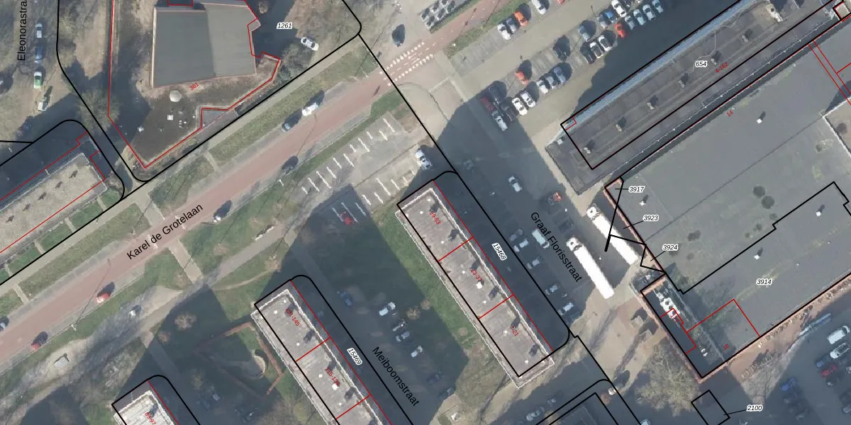 Het perceel waarop Graaf Florisstraat 49 staat heeft een oppervlakte van 802 m². Dit is een groot perceel. De perceeloppervlakte wordt geregistreerd door het Kadaster. Gedetailleerde informatie over de maten van dit perceel kunt u vinden in het rapport Kadastrale kaart met maatvoering van Graaf Florisstraat 49.