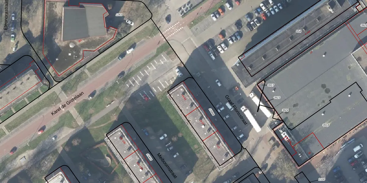 Het perceel waarop Graaf Florisstraat 51 staat heeft een oppervlakte van 802 m². Dit is een groot perceel. De perceeloppervlakte wordt geregistreerd door het Kadaster. Gedetailleerde informatie over de maten van dit perceel kunt u vinden in het rapport Kadastrale kaart met maatvoering van Graaf Florisstraat 51.