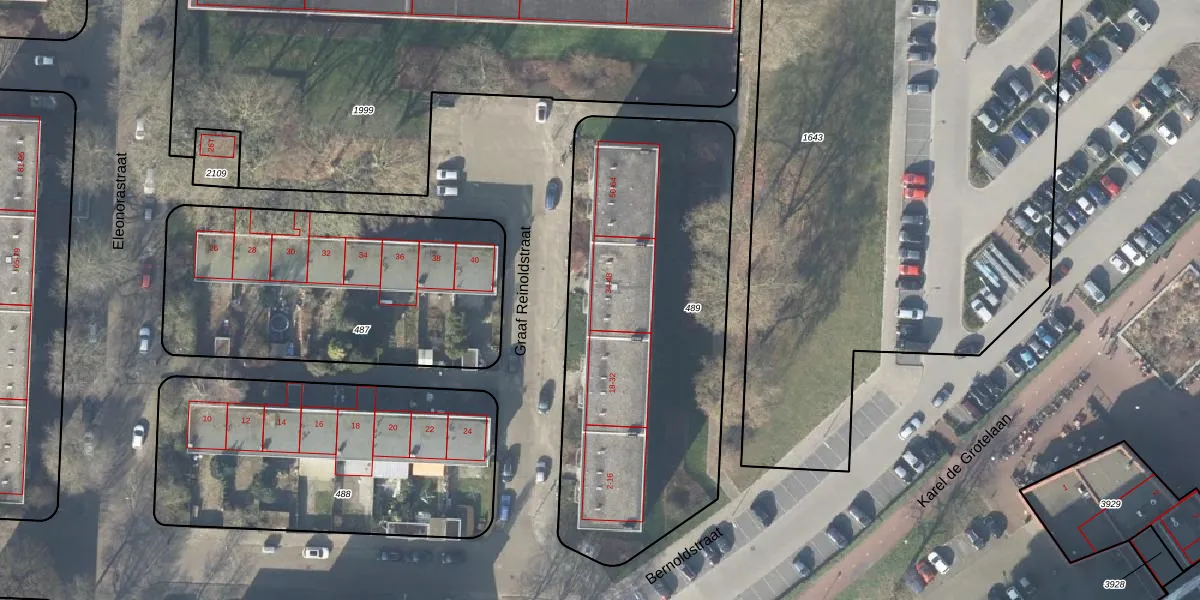 Het perceel waarop Graaf Reinoldstraat 34 staat heeft een oppervlakte van 1883 m². Dit is een zeer groot perceel. De perceeloppervlakte wordt geregistreerd door het Kadaster. Gedetailleerde informatie over de maten van dit perceel kunt u vinden in het rapport Kadastrale kaart met maatvoering van Graaf Reinoldstraat 34.