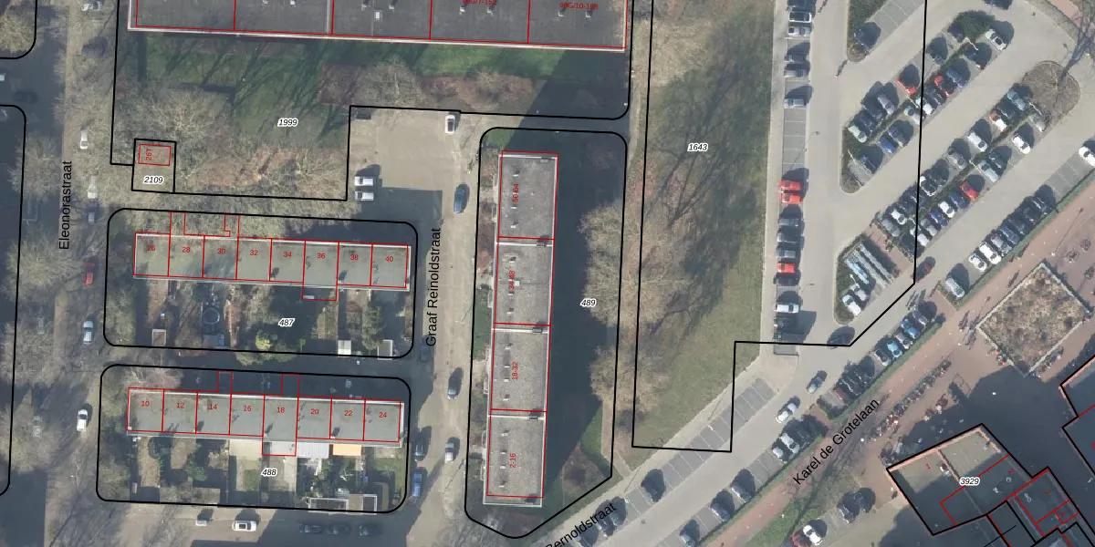Het perceel waarop Graaf Reinoldstraat 42 staat heeft een oppervlakte van 1883 m². Dit is een zeer groot perceel. De perceeloppervlakte wordt geregistreerd door het Kadaster. Gedetailleerde informatie over de maten van dit perceel kunt u vinden in het rapport Kadastrale kaart met maatvoering van Graaf Reinoldstraat 42.