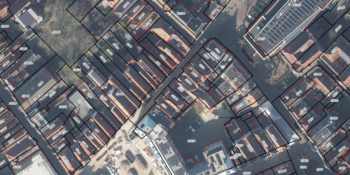 Het perceel waarop Graven 13 staat heeft een oppervlakte van 95 m². Dit is een klein perceel. De perceeloppervlakte wordt geregistreerd door het Kadaster. Gedetailleerde informatie over de maten van dit perceel kunt u vinden in het rapport Kadastrale kaart met maatvoering van Graven 13.