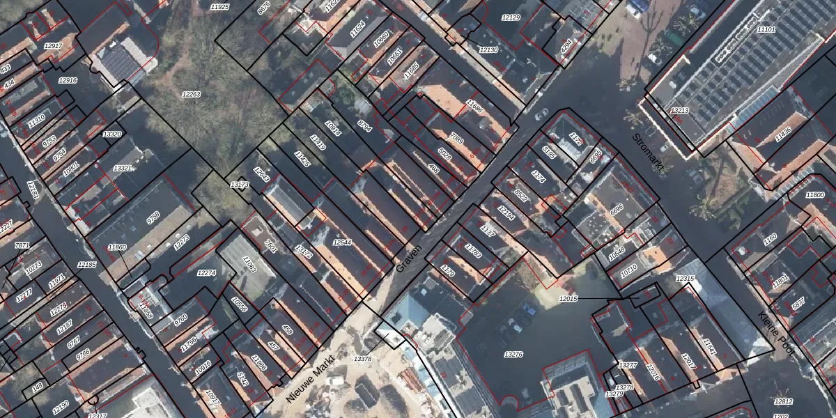 Het perceel waarop Graven 16 staat heeft een oppervlakte van 215 m². Dit is een middelgroot perceel. De perceeloppervlakte wordt geregistreerd door het Kadaster. Gedetailleerde informatie over de maten van dit perceel kunt u vinden in het rapport Kadastrale kaart met maatvoering van Graven 16.