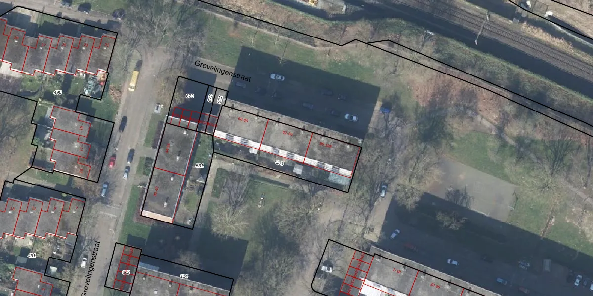 Het perceel waarop Grevelingenstraat 92 staat heeft een oppervlakte van 787 m². Dit is een groot perceel. De perceeloppervlakte wordt geregistreerd door het Kadaster. Gedetailleerde informatie over de maten van dit perceel kunt u vinden in het rapport Kadastrale kaart met maatvoering van Grevelingenstraat 92.