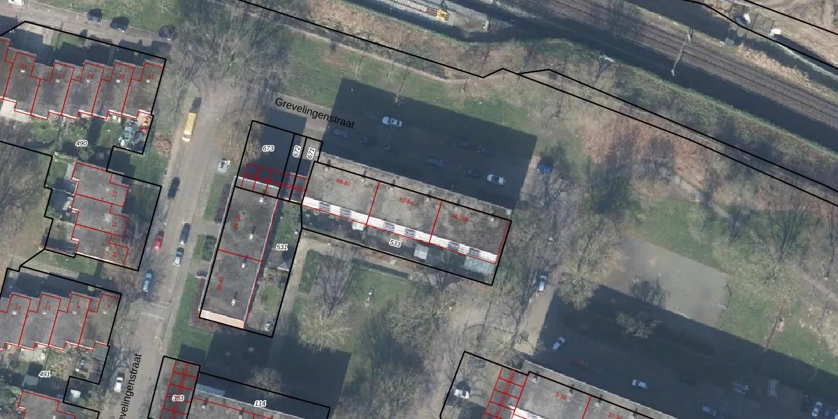 Het perceel waarop Grevelingenstraat 94 staat heeft een oppervlakte van 787 m². Dit is een groot perceel. De perceeloppervlakte wordt geregistreerd door het Kadaster. Gedetailleerde informatie over de maten van dit perceel kunt u vinden in het rapport Kadastrale kaart met maatvoering van Grevelingenstraat 94.