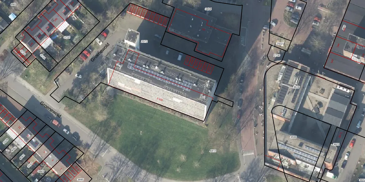 Het perceel waarop Groenewold 10 staat heeft een oppervlakte van 3089 m². Dit is een zeer groot perceel. De perceeloppervlakte wordt geregistreerd door het Kadaster. Gedetailleerde informatie over de maten van dit perceel kunt u vinden in het rapport Kadastrale kaart met maatvoering van Groenewold 10.