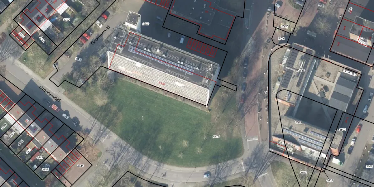 Het perceel waarop Groenewold 106 staat heeft een oppervlakte van 3089 m². Dit is een zeer groot perceel. De perceeloppervlakte wordt geregistreerd door het Kadaster. Gedetailleerde informatie over de maten van dit perceel kunt u vinden in het rapport Kadastrale kaart met maatvoering van Groenewold 106.