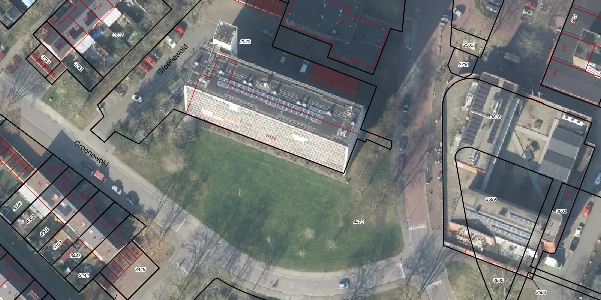 Het perceel waarop Groenewold 108 staat heeft een oppervlakte van 3089 m². Dit is een zeer groot perceel. De perceeloppervlakte wordt geregistreerd door het Kadaster. Gedetailleerde informatie over de maten van dit perceel kunt u vinden in het rapport Kadastrale kaart met maatvoering van Groenewold 108.