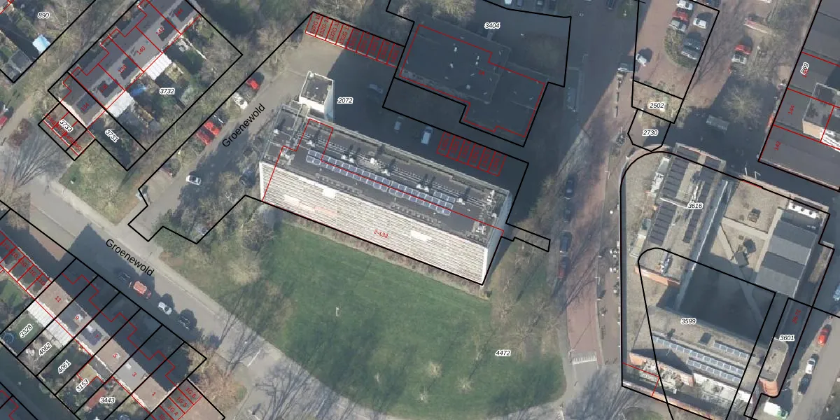 Het perceel waarop Groenewold 12 staat heeft een oppervlakte van 3089 m². Dit is een zeer groot perceel. De perceeloppervlakte wordt geregistreerd door het Kadaster. Gedetailleerde informatie over de maten van dit perceel kunt u vinden in het rapport Kadastrale kaart met maatvoering van Groenewold 12.