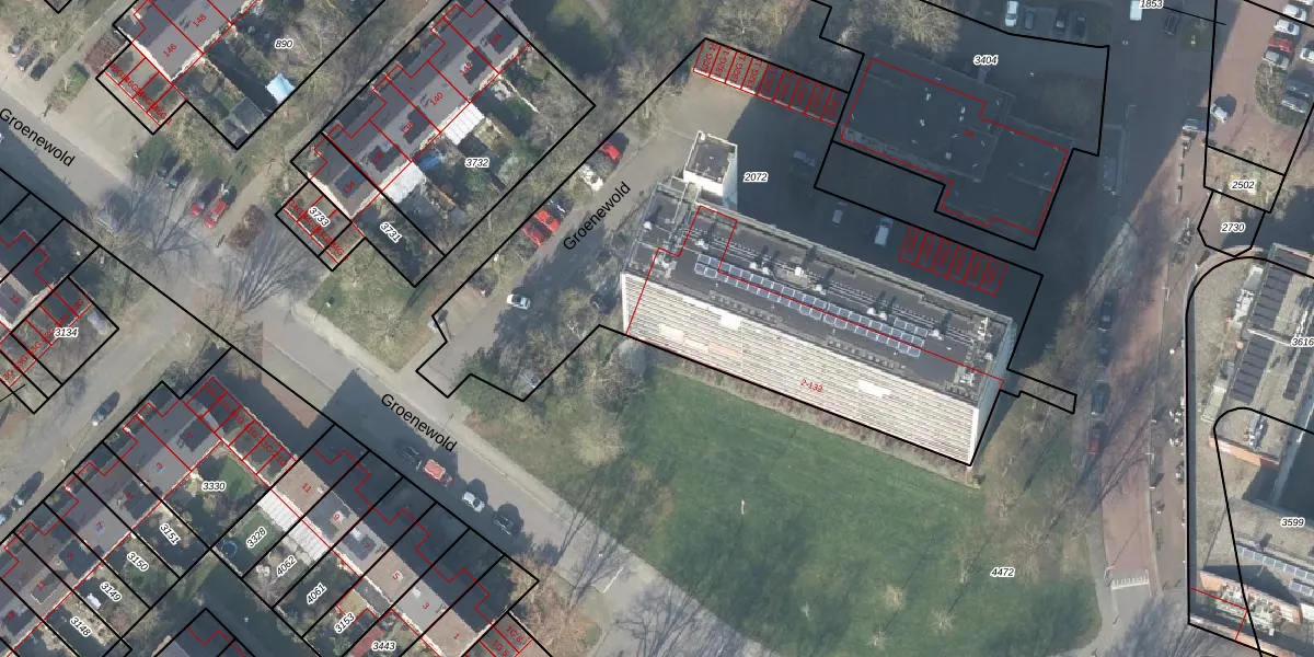 Het perceel waarop Groenewold 130 staat heeft een oppervlakte van 3089 m². Dit is een zeer groot perceel. De perceeloppervlakte wordt geregistreerd door het Kadaster. Gedetailleerde informatie over de maten van dit perceel kunt u vinden in het rapport Kadastrale kaart met maatvoering van Groenewold 130.