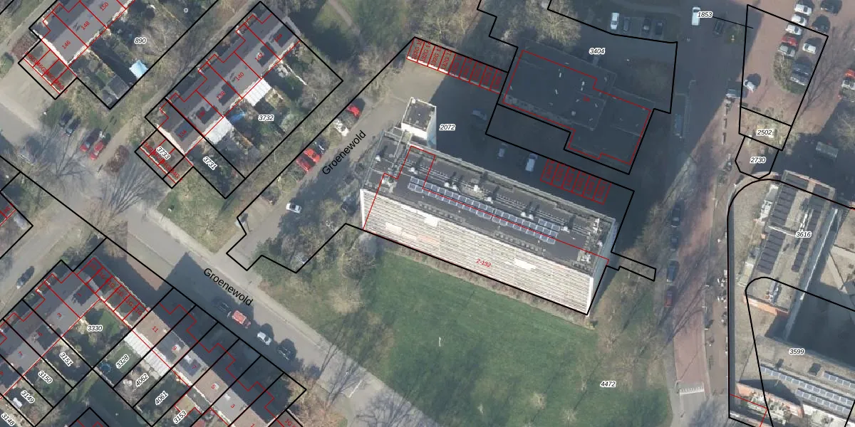 Het perceel waarop Groenewold 58 staat heeft een oppervlakte van 3089 m². Dit is een zeer groot perceel. De perceeloppervlakte wordt geregistreerd door het Kadaster. Gedetailleerde informatie over de maten van dit perceel kunt u vinden in het rapport Kadastrale kaart met maatvoering van Groenewold 58.