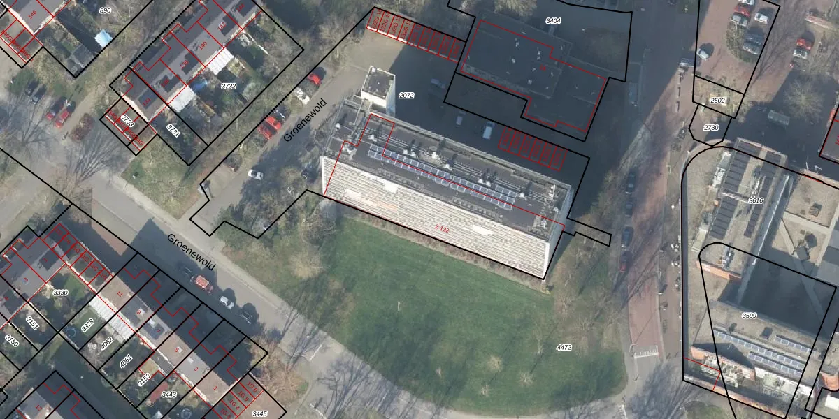 Het perceel waarop Groenewold 84 staat heeft een oppervlakte van 3089 m². Dit is een zeer groot perceel. De perceeloppervlakte wordt geregistreerd door het Kadaster. Gedetailleerde informatie over de maten van dit perceel kunt u vinden in het rapport Kadastrale kaart met maatvoering van Groenewold 84.