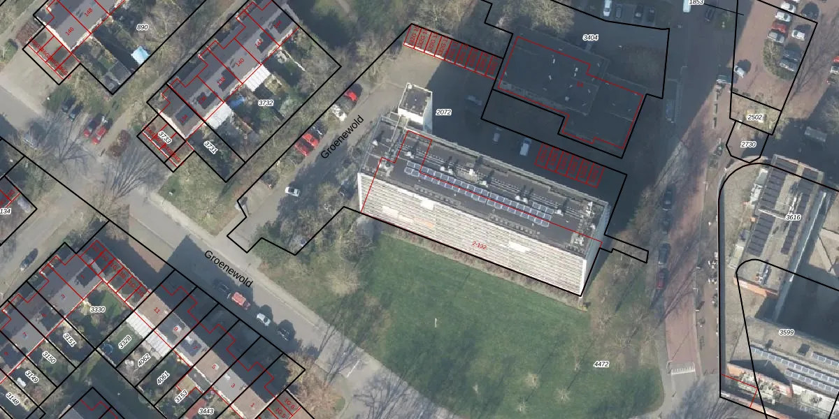 Het perceel waarop Groenewold 90 staat heeft een oppervlakte van 3089 m². Dit is een zeer groot perceel. De perceeloppervlakte wordt geregistreerd door het Kadaster. Gedetailleerde informatie over de maten van dit perceel kunt u vinden in het rapport Kadastrale kaart met maatvoering van Groenewold 90.