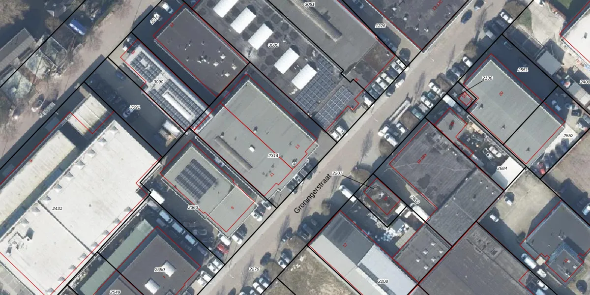 Het perceel waarop Groningerstraat 13 staat heeft een oppervlakte van 1204 m². Dit is een zeer groot perceel. De perceeloppervlakte wordt geregistreerd door het Kadaster. Gedetailleerde informatie over de maten van dit perceel kunt u vinden in het rapport Kadastrale kaart met maatvoering van Groningerstraat 13.