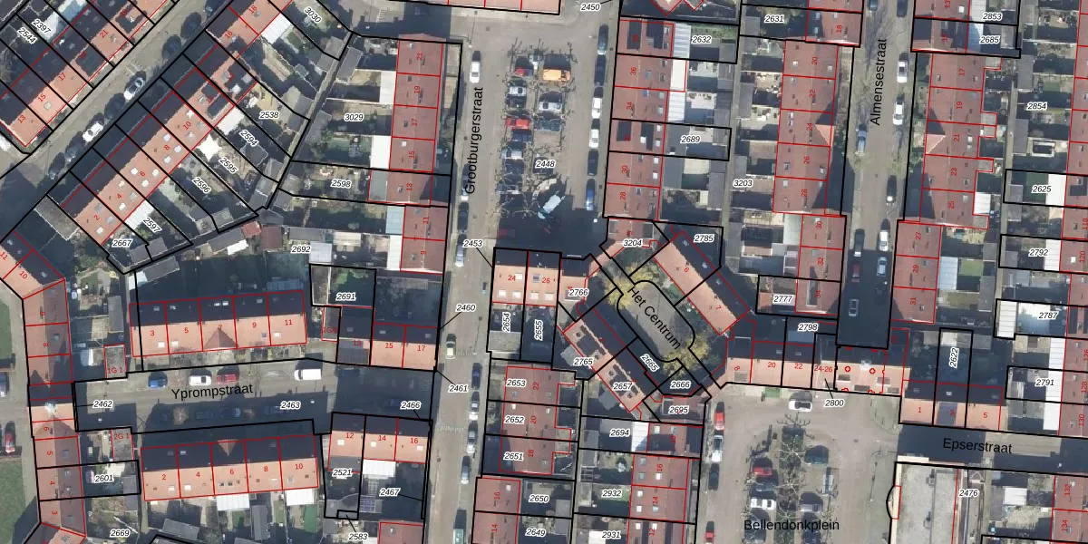 Gebruik de zoekbalk of klik op een perceel voor informatie over de adressen binnen dit perceel.