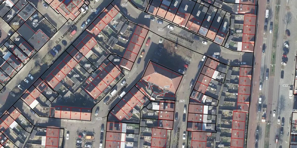 Het perceel waarop Grootburgerstraat 56 staat heeft een oppervlakte van 545 m². Dit is een groot perceel. De perceeloppervlakte wordt geregistreerd door het Kadaster. Gedetailleerde informatie over de maten van dit perceel kunt u vinden in het rapport Kadastrale kaart met maatvoering van Grootburgerstraat 56.
