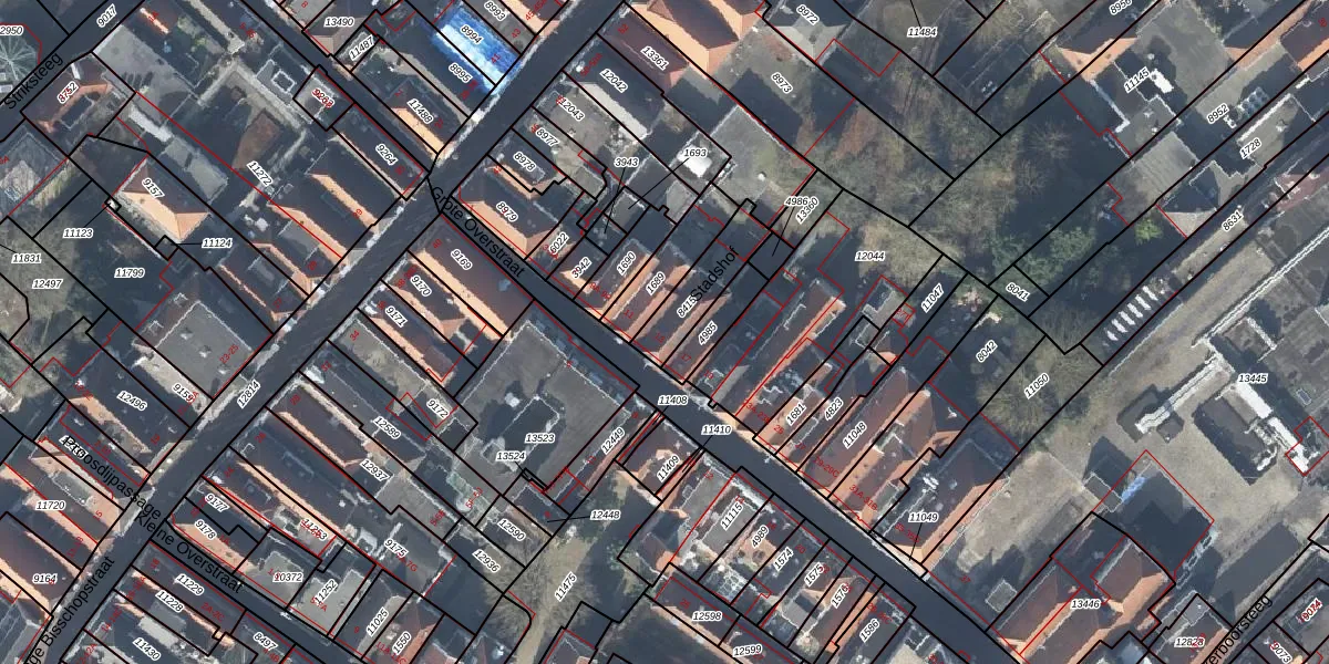Grote Overstraat 13 is gelegen op kadastraal perceel DVT00E8415. Deze kadastrale aanduiding is uniek en wordt gebruikt door het Kadaster om eigendomsrechten en andere zakelijke rechten vast te leggen. Het perceel maakt onderdeel uit van de kadastrale gemeente Deventer.