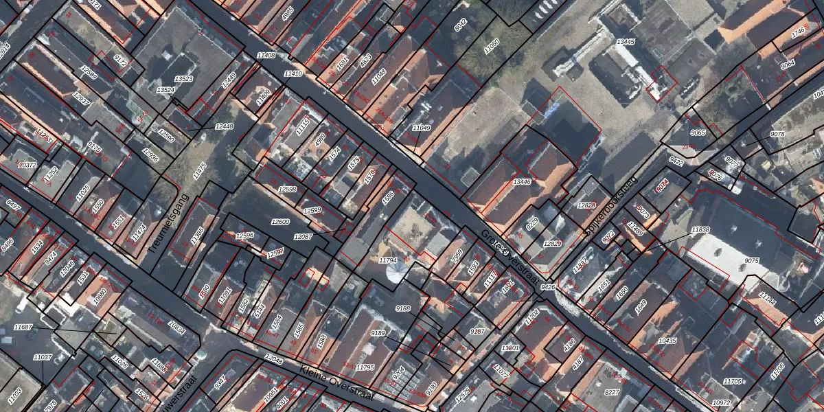 Het perceel waarop Grote Overstraat 30 staat heeft een oppervlakte van 335 m². Dit is een groot perceel. De perceeloppervlakte wordt geregistreerd door het Kadaster. Gedetailleerde informatie over de maten van dit perceel kunt u vinden in het rapport Kadastrale kaart met maatvoering van Grote Overstraat 30.