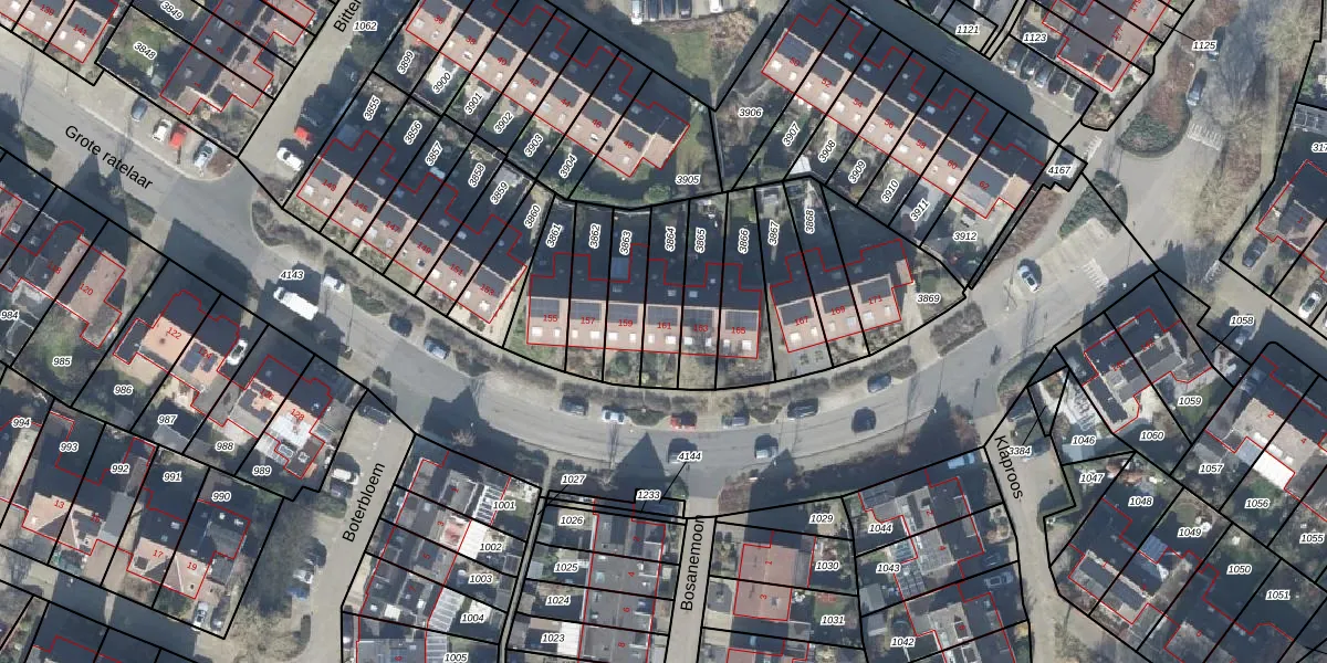 Het perceel waarop Grote ratelaar 161 staat heeft een oppervlakte van 159 m². Dit is een middelgroot perceel. De perceeloppervlakte wordt geregistreerd door het Kadaster. Gedetailleerde informatie over de maten van dit perceel kunt u vinden in het rapport Kadastrale kaart met maatvoering van Grote ratelaar 161.