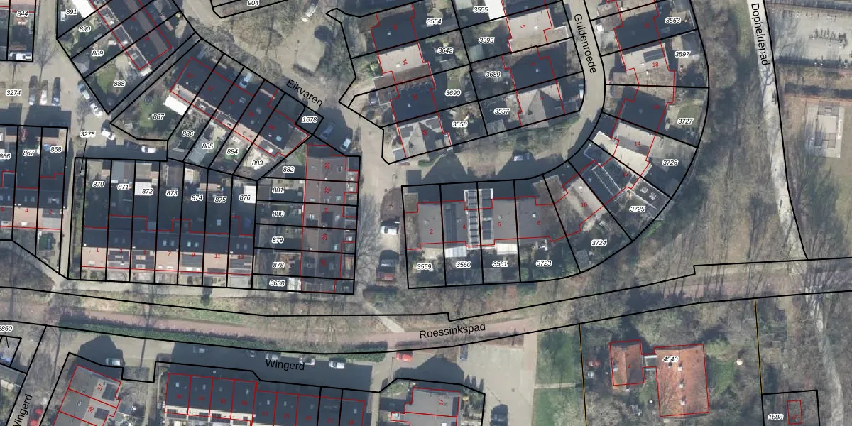 Het perceel waarop Guldenroede 2 staat heeft een oppervlakte van 215 m². Dit is een middelgroot perceel. De perceeloppervlakte wordt geregistreerd door het Kadaster. Gedetailleerde informatie over de maten van dit perceel kunt u vinden in het rapport Kadastrale kaart met maatvoering van Guldenroede 2.