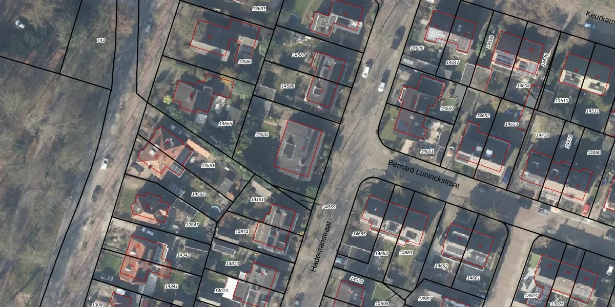 Gebruik de zoekbalk of klik op een perceel voor informatie over de adressen binnen dit perceel.
