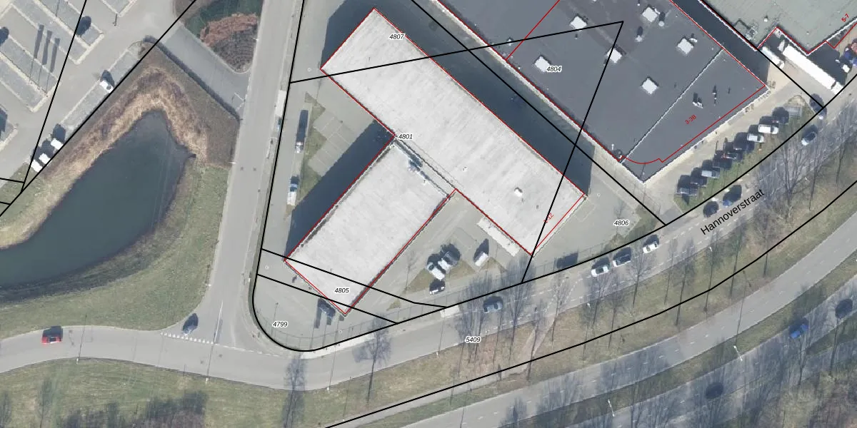 Het perceel waarop Hannoverstraat 1-G staat heeft een oppervlakte van 3205 m². Dit is een zeer groot perceel. De perceeloppervlakte wordt geregistreerd door het Kadaster. Gedetailleerde informatie over de maten van dit perceel kunt u vinden in het rapport Kadastrale kaart met maatvoering van Hannoverstraat 1-G.