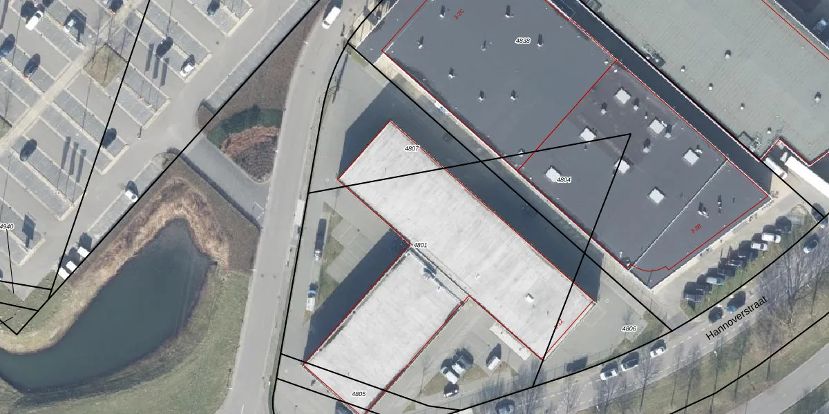 Het perceel waarop Hannoverstraat 1-AM staat heeft een oppervlakte van 3205 m². Dit is een zeer groot perceel. De perceeloppervlakte wordt geregistreerd door het Kadaster. Gedetailleerde informatie over de maten van dit perceel kunt u vinden in het rapport Kadastrale kaart met maatvoering van Hannoverstraat 1-AM.