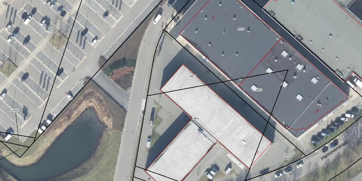 Het perceel waarop Hannoverstraat 1-AR staat heeft een oppervlakte van 3205 m². Dit is een zeer groot perceel. De perceeloppervlakte wordt geregistreerd door het Kadaster. Gedetailleerde informatie over de maten van dit perceel kunt u vinden in het rapport Kadastrale kaart met maatvoering van Hannoverstraat 1-AR.
