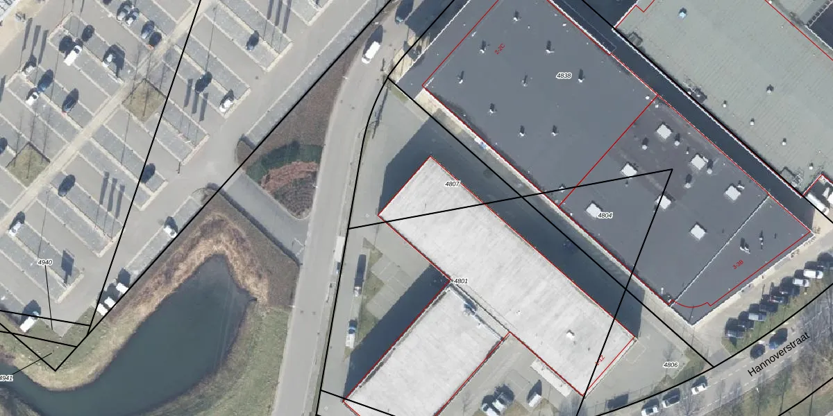 Het perceel waarop Hannoverstraat 1-AS staat heeft een oppervlakte van 760 m². Dit is een groot perceel. De perceeloppervlakte wordt geregistreerd door het Kadaster. Gedetailleerde informatie over de maten van dit perceel kunt u vinden in het rapport Kadastrale kaart met maatvoering van Hannoverstraat 1-AS.