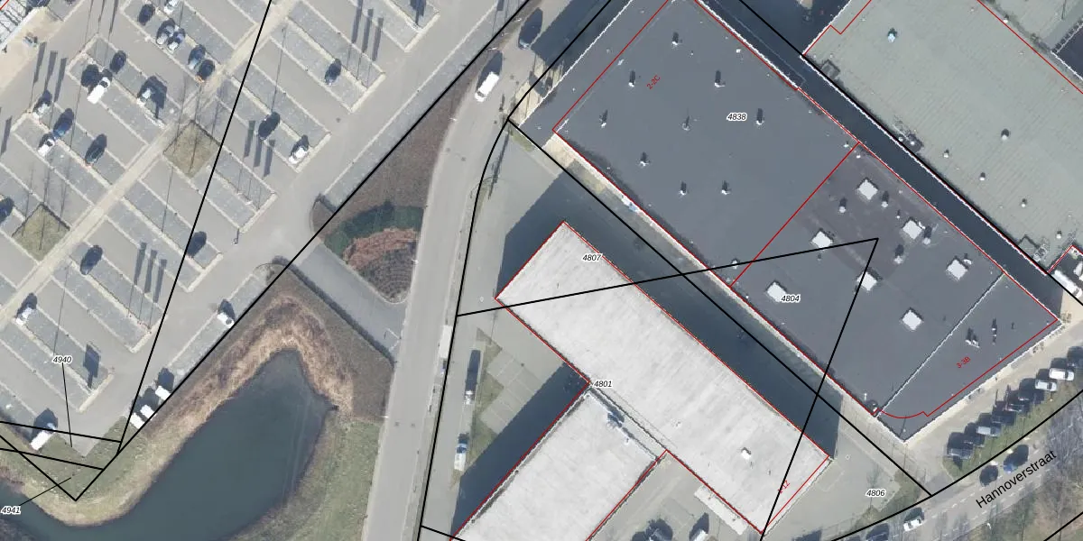 Het perceel waarop Hannoverstraat 1-AT staat heeft een oppervlakte van 760 m². Dit is een groot perceel. De perceeloppervlakte wordt geregistreerd door het Kadaster. Gedetailleerde informatie over de maten van dit perceel kunt u vinden in het rapport Kadastrale kaart met maatvoering van Hannoverstraat 1-AT.