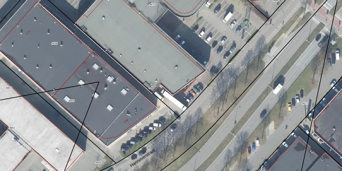 Het perceel waarop Hannoverstraat 5 staat heeft een oppervlakte van 8958 m². Dit is een zeer groot perceel. De perceeloppervlakte wordt geregistreerd door het Kadaster. Gedetailleerde informatie over de maten van dit perceel kunt u vinden in het rapport Kadastrale kaart met maatvoering van Hannoverstraat 5.