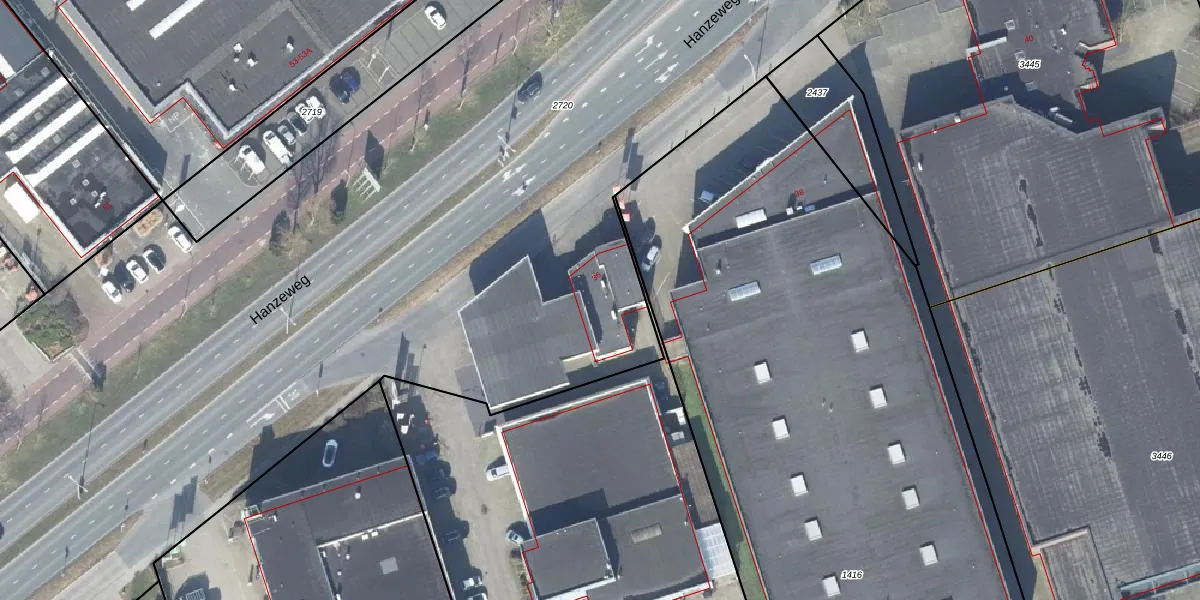 Het perceel waarop Hanzeweg 36 staat heeft een oppervlakte van 1,5 ha. Dit is een zeer groot perceel. De perceeloppervlakte wordt geregistreerd door het Kadaster. Gedetailleerde informatie over de maten van dit perceel kunt u vinden in het rapport Kadastrale kaart met maatvoering van Hanzeweg 36.