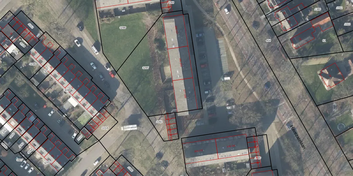 Het perceel waarop Havezatelaan 183 staat heeft een oppervlakte van 1925 m². Dit is een zeer groot perceel. De perceeloppervlakte wordt geregistreerd door het Kadaster. Gedetailleerde informatie over de maten van dit perceel kunt u vinden in het rapport Kadastrale kaart met maatvoering van Havezatelaan 183.