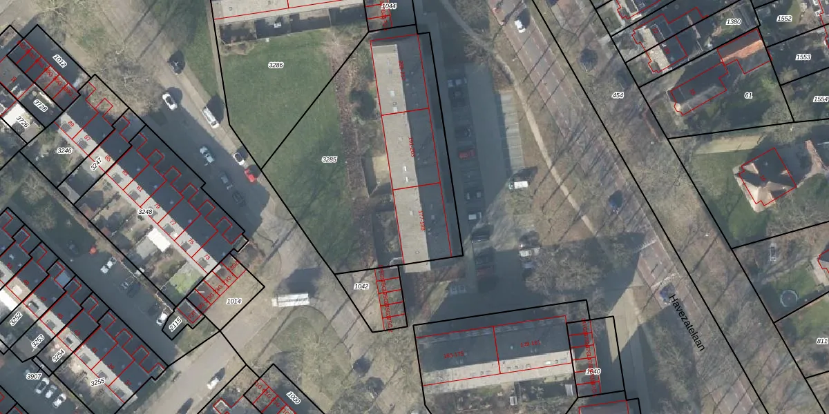 Het perceel waarop Havezatelaan 185 staat heeft een oppervlakte van 1925 m². Dit is een zeer groot perceel. De perceeloppervlakte wordt geregistreerd door het Kadaster. Gedetailleerde informatie over de maten van dit perceel kunt u vinden in het rapport Kadastrale kaart met maatvoering van Havezatelaan 185.
